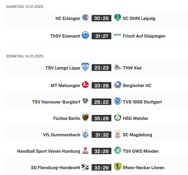 Flensburg SG Flensburg-Handewitt | 17 | 12 | 3 | 2 | 608:532 | 76 | 27:7 | |