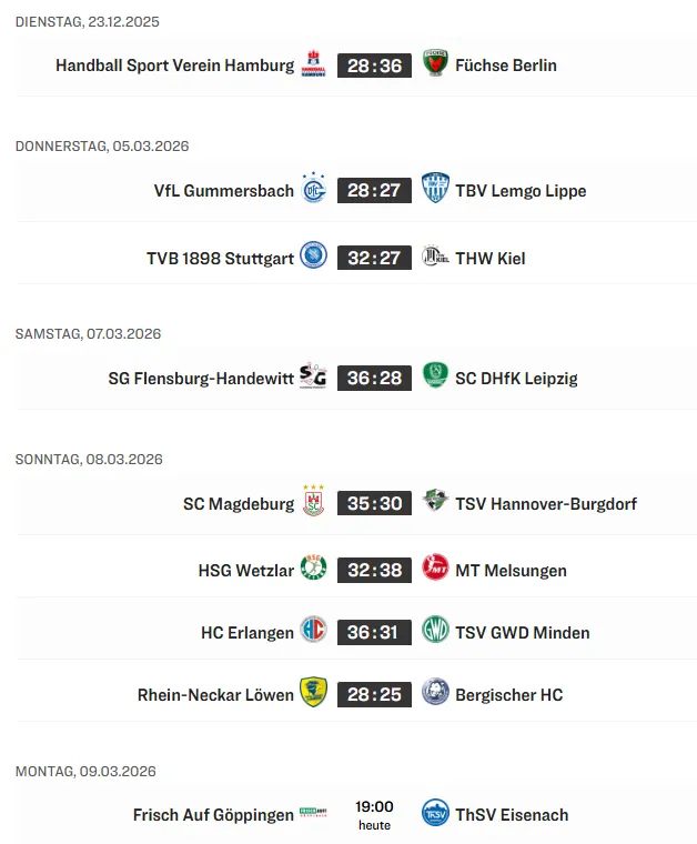 Flensburg SG Flensburg-Handewitt | 24 | 18 | 3 | 3 | 846:749 | 97 | 39:9 | |