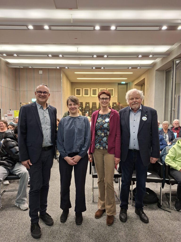 (von links) Bürgermeister Markus Baier, Prof. Dr. Katja Frieler vom Potsdam-Institut für Klimafolgenforschung, Ute Koczy, Geschäftsführerin der Fairtrade-Initiative Lemgo, und Helmut Kohorst, Sprecher der Fairtrade-Initiative Lemgo. (Foto: Alte Hansestadt Lemgo)