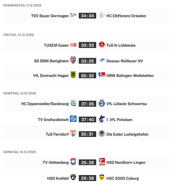 N-Lübbecke TuS N-Lübbecke | 15 | 3 | 4 | 8 | 395:423 | -28 | 10:20 | |