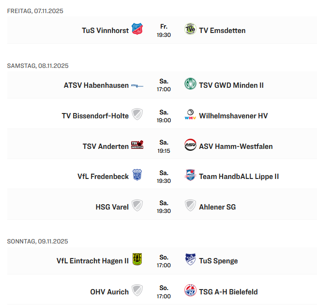 HSG Varel HSG Varel | 9 | 2 | 3 | 4 | 264:283 | -19 | 7:11 | |