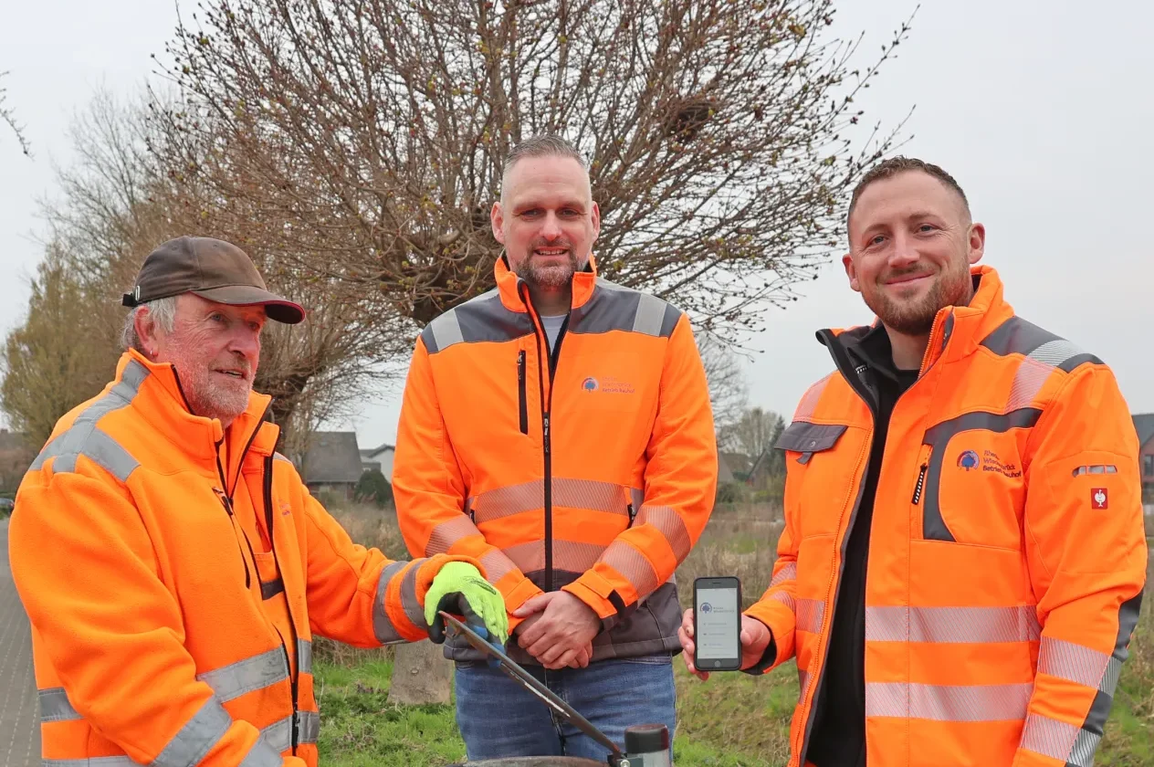 Jürgen Grießbach, Bauhofleiter Benjamin Stipp und Vorarbeiter Andrej Isaak freuen sich, dass mit den gechipten Abfallbehältern eine bessere Planung der Entleerungen möglich wird +++