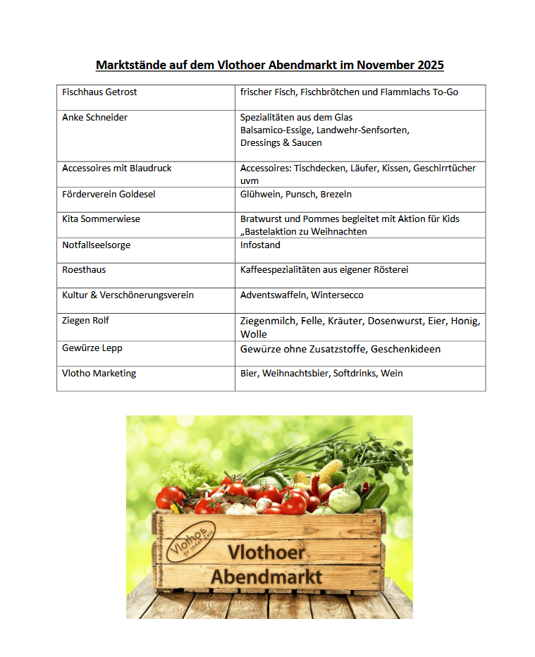Alle teilnehmenden Stände finden Sie wie gewohnt auf www.vlotho.de.