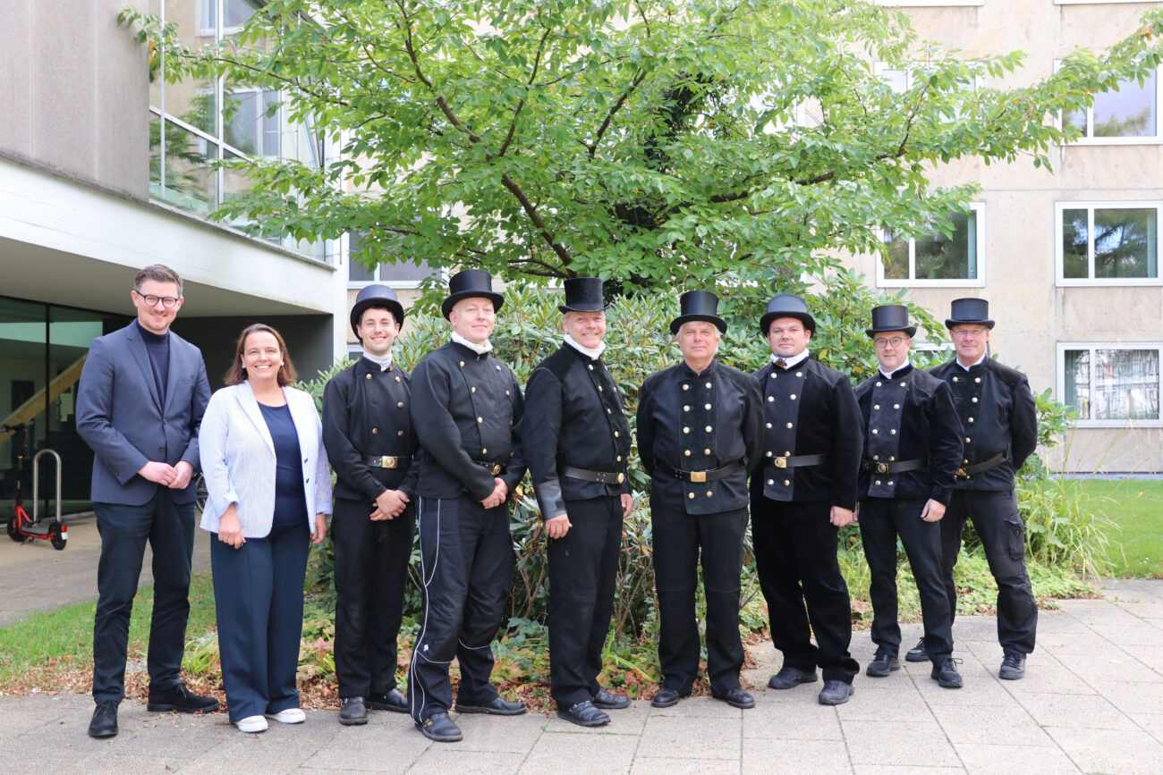 Im Rahmen einer kleinen Feierstunde gratulierte Tim Wagner, zuständiger Dezernent bei der Bezirksregierung, den Hoheitsträgern zur Übernahme ihres Kehrbezirks. Als Vertreter der Schornsteinfegerinnung nahm der stellvertretende Obermeister Rainer Wulfmeier teil, als Altgeselle gratulierte Fynn Krämer den bevollmächtigten Bezirksschornsteinfegern.