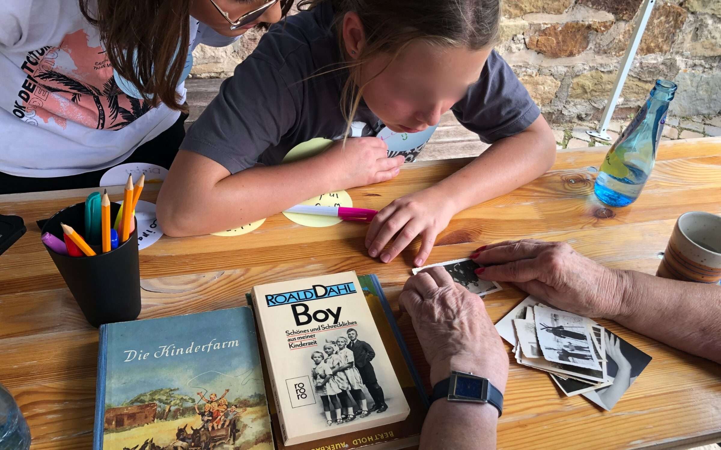 Auch zahlreiche Kindergeburtstage wurden nach einem ähnlichen Konzept durchgeführt. Darüber hinaus lernten im Rahmen verschiedener (Ferienspiel)-Angebote viele jüngere und ältere Kinder die Ausstellung aus ganz unterschiedlichen Perspektiven kennen: Es wurden eigene Hexenhäuser gebaut, Zeichnen gelernt, ein kleines Hörspiel produziert, Reisigbesen gebaut oder zwischen jungen und älteren Menschen angeleitet über Kindheitserinnerungen und -literatur gesprochen.
