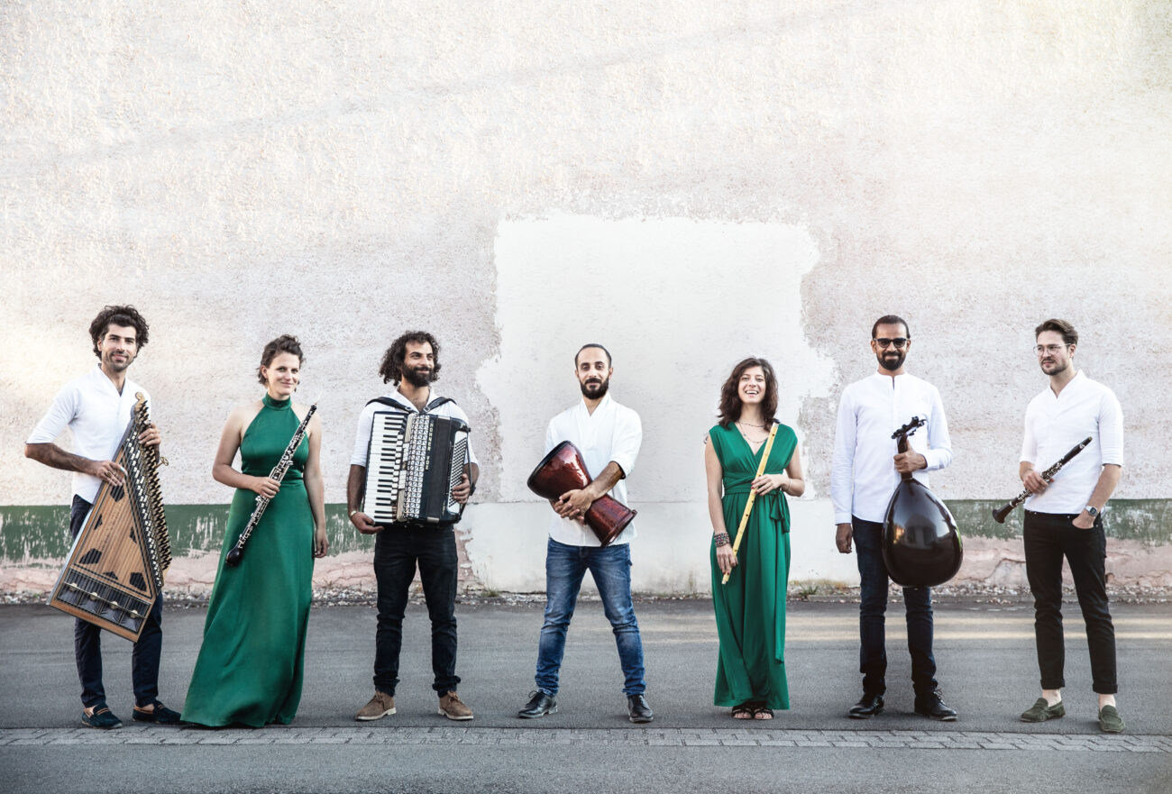 Abdalhade Deb: Oud, Gesang | Ibrahim Bajo: Kanun | Valentina Bellanova: Nay, Flöten | Amjad Sukar: Perkussion | Wesam Karema: Akkordeon | Andreas Freitag: Klarinette | Friedrike Kayser: Oboe