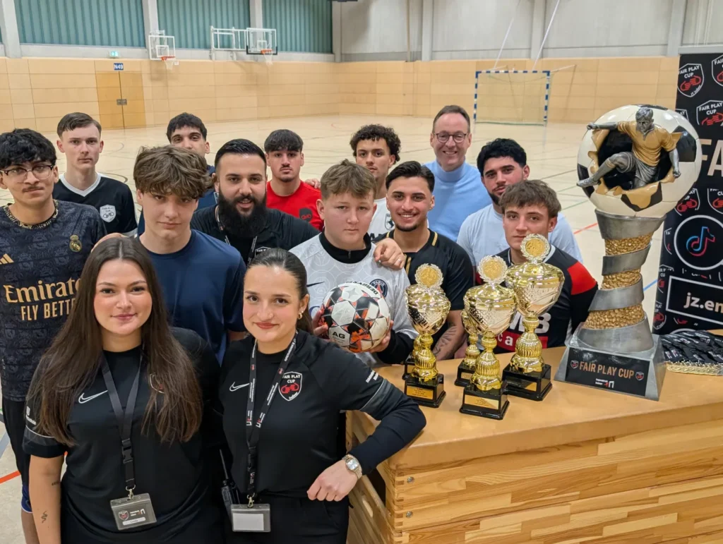 So gibt es beispielsweise Punkte für das Verhalten auf und neben der Spielfläche, den Umgang mit den Schiedsrichtern, die (faire) Spielweise oder die Anzahl der Fouls. Der hohe Stellenwert des Fair Play lässt sich auch an der Größe der Trophäen ablesen: Während es schon bei den Pokalen für die vier erstplatzierten Mannschaften eine Abstufung der Größe nach gibt, wird selbst der Cup für die Siegermannschaft noch mal deutlich überragt von der Trophäe für die fairste Mannschaft. Um es vorwegzunehmen: Das Team von „LaFami FC“ aus Hamm nahm den Pokal in diesem Jahr mit in die Ruhrgebietsstadt.