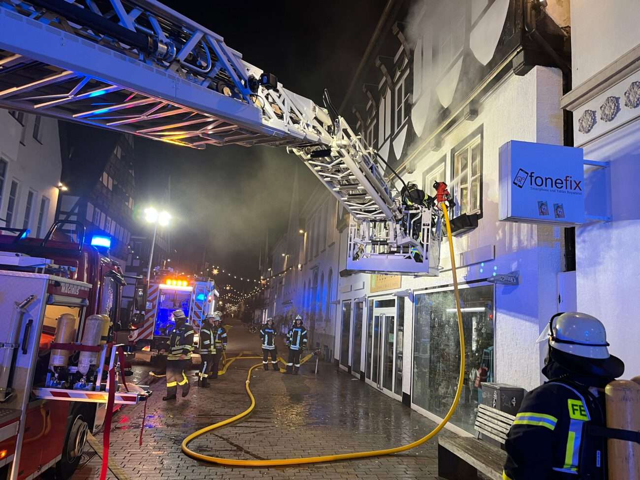 Aufmerksamen Beobachtern ist am Samstagabend kurz nach 22 Uhr ein ausgelöster Heimrauchmelder und Feuerschein in einer Wohnung in der Mittelstraße aufgefallen. Die Freiwillige Feuerwehr Lemgo rückte unter anderem mit ihrer Drehleiter an und bekämpfte den Brand im 1. Obergeschoss sehr erfolgreich von der Mittelstraße aus. Der Zugang zum Haus erfolgte über einen Eingang in der Echternstraße. Dabei bekam die Feuerwehr Unterstützung von Nachbarn. In der Wohnung wurden keine Personen angetroffen, jedoch zwei Katzen, die eingefangen wurden bzw. selbstständig den Weg nach draußen antraten. In das unter der Wohnung liegende Ladengeschäft trat Löschwasser ein; die Eigentümer kümmerten sich darum, den entsprechenden Bereich freizuräumen. Die Feuerwehr nahm das Löschwasser im Haus soweit möglich mit einem Wasserstaubsauger auf. Die Wohnung ist nach dem Brand vorerst nicht bewohnbar, die zwischenzeitlich eingetroffenen Bewohner kümmerten sich eigenständig um eine alternative Unterkunft. Nach Nachlöscharbeiten war der Einsatz um 00.12 Uhr beendet. Es waren 37 Feuerwehrleute im Einsatz.