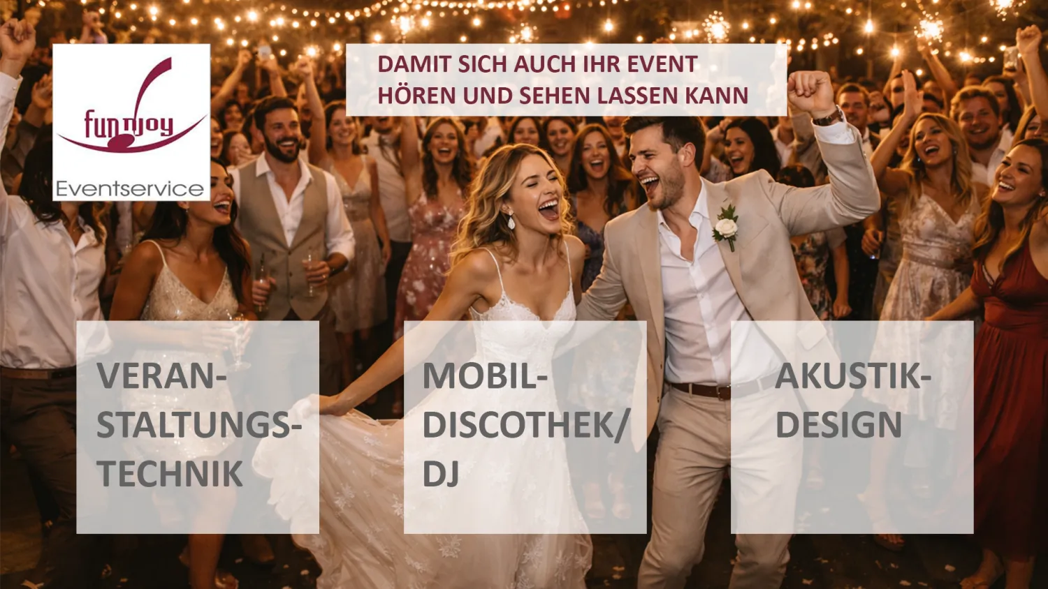 Funnjoy Eventtechnik vermietet Ton-, Licht und Videotechnik, sowie Bühnen und Traversen für: