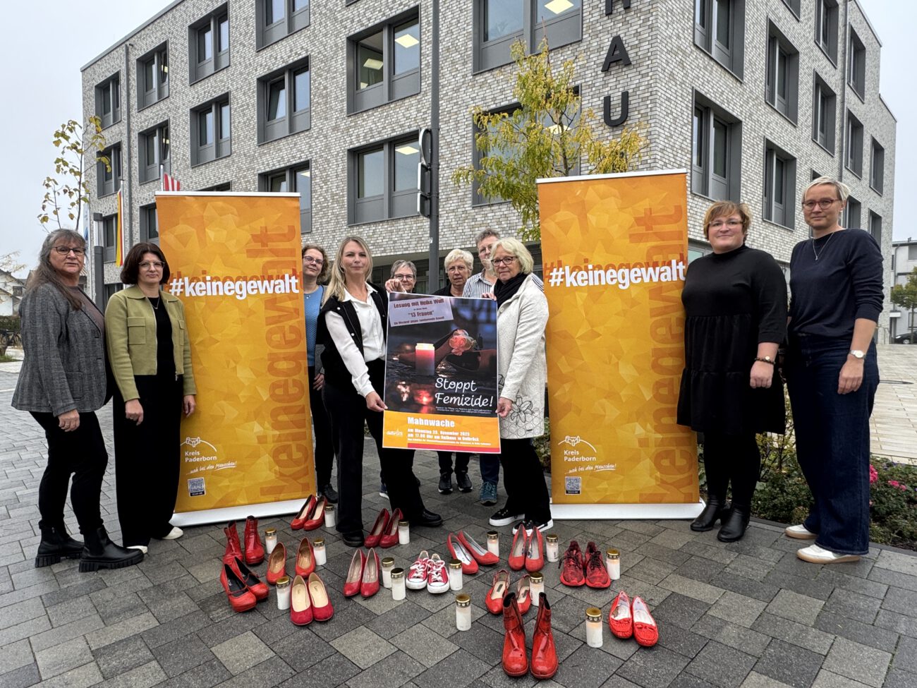 Die Gleichstellungsbeauftragten der Kommunen im Kreis Paderborn freuen sich über viele Teilnehmende, die gemeinsam ein Zeichen gegen Gewalt an Frauen setzen und der Opfer von Femiziden gedenken.