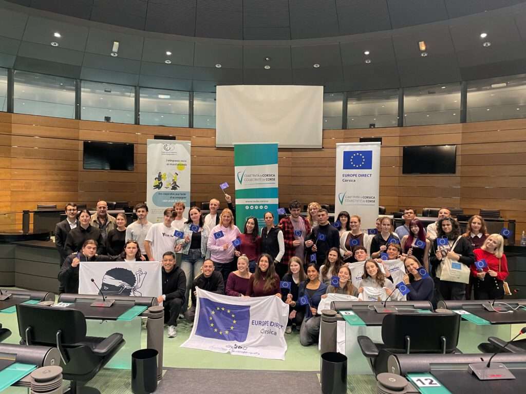 Gruppenbild der Teilnehmenden der Jugendbegegnung von GivEUvoice in der Regionalverwaltung Korsikas (Cullettività di Corsica – Collectivité de Corse) +++ Foto: Stadt Detmold