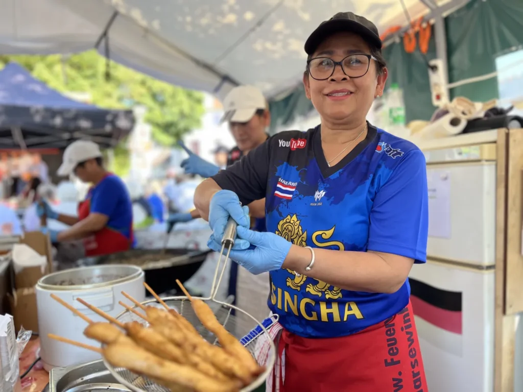 Bonruan Perkmann frittierte im vergangenen Jahr Hähnchenspieße an ihrem Stand. Foto: Stadt Gütersloh