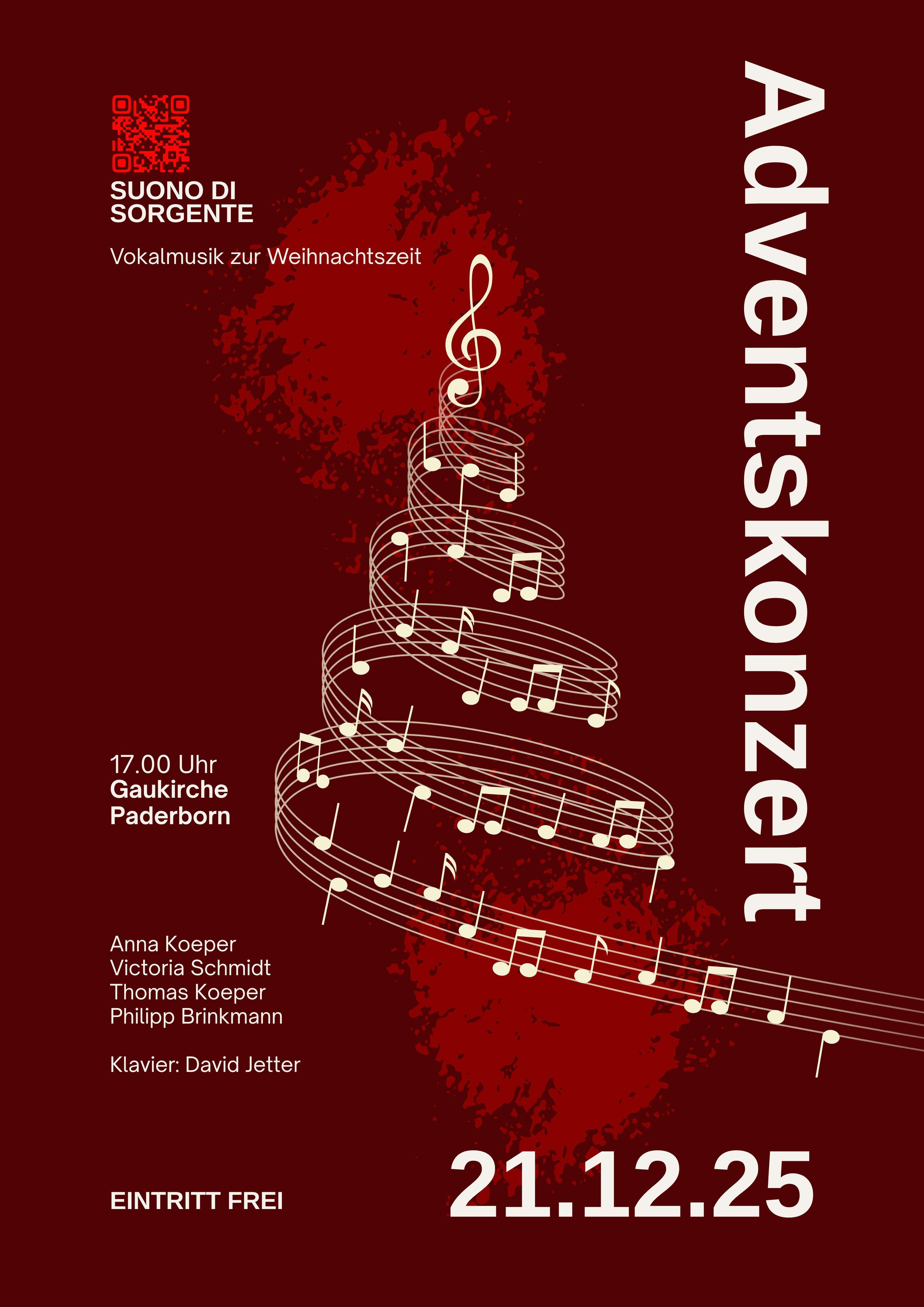 Auch in diesem Jahr lädt das Paderborner Vokalquartett „Suono di sorgente“ wieder zu einem besonderen musikalischen Erlebnis in der besinnlichen Adventszeit ein. Inmitten des Trubels auf dem Paderborner Weihnachtsmarkt sorgt das Quartett traditionell mit einer Stunde hochklassiger Vokalmusik für eine harmonische Auszeit. Die vier talentierten Musikerinnen und Musiker präsentieren ein abwechslungsreiches Programm, das sowohl klassische Weihnachtslieder wie „Maria durch ein Dornwald ging“ und „Tollite hostias“ als auch moderne Stücke wie das schwedische „Jul jul“ und „The Advent Candle“ umfasst.