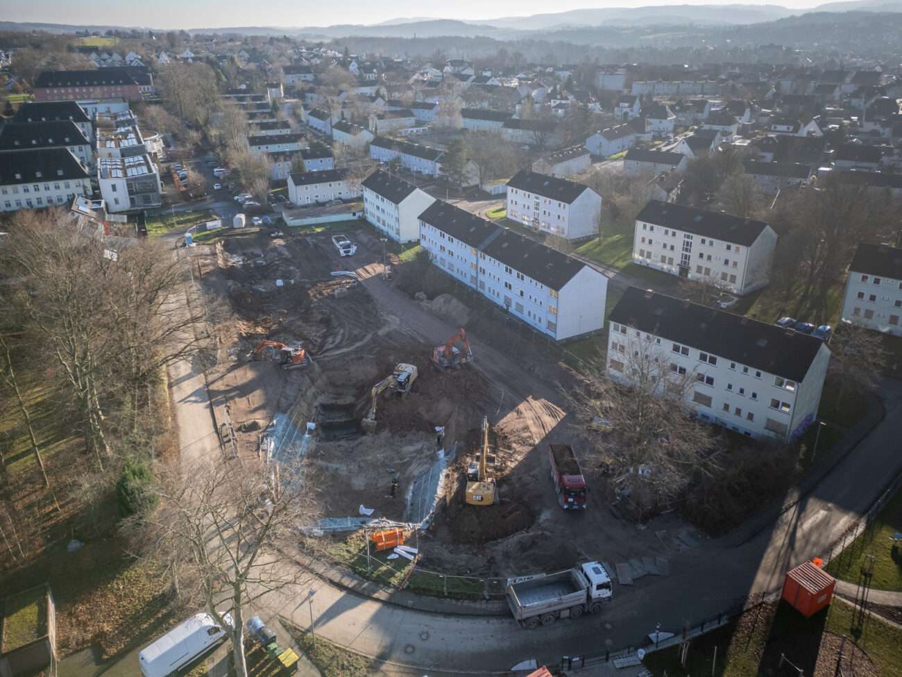 Detmold. Das Tempo bleibt hoch im Detmolder „Adenauerpark“. Wo noch im Spätsommer die Zukunft des Wohnquartiers ungewiss schien, sind nun Fakten geschaffen worden: Die vorbereitenden Abbrucharbeiten sind vollständig abgeschlossen, und die Baustelle ist eingerichtet. Damit ist der Weg frei für den nächsten Meilenstein: Noch vor den Weihnachtsfeiertagen werden die ersten Hochbauarbeiten beginnen.