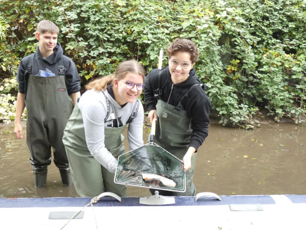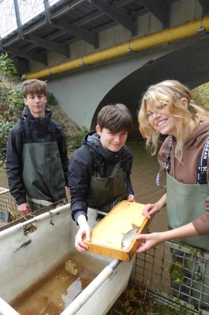 Schülerteam unterwegs beim „Fischezähle“ in der Bastau, Bereich oberhalb der Ringstraße +++ Foto: © Dr. Christian Frenz