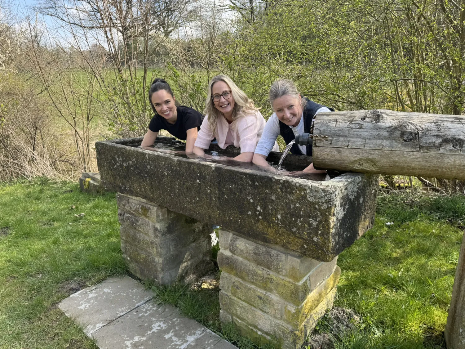 Bild: Erfrischt in die Gesunde Woche: Gesundheitsbeauftragte Selina Günter, Bürgermeisterin Ulla Berhorst-Schäfers und KuGA-Beauftragte Silvia Kramps freuen sich auf die geplanten und gönnen sich ein wohltuendes Armbad im malerischen Golmecketal.