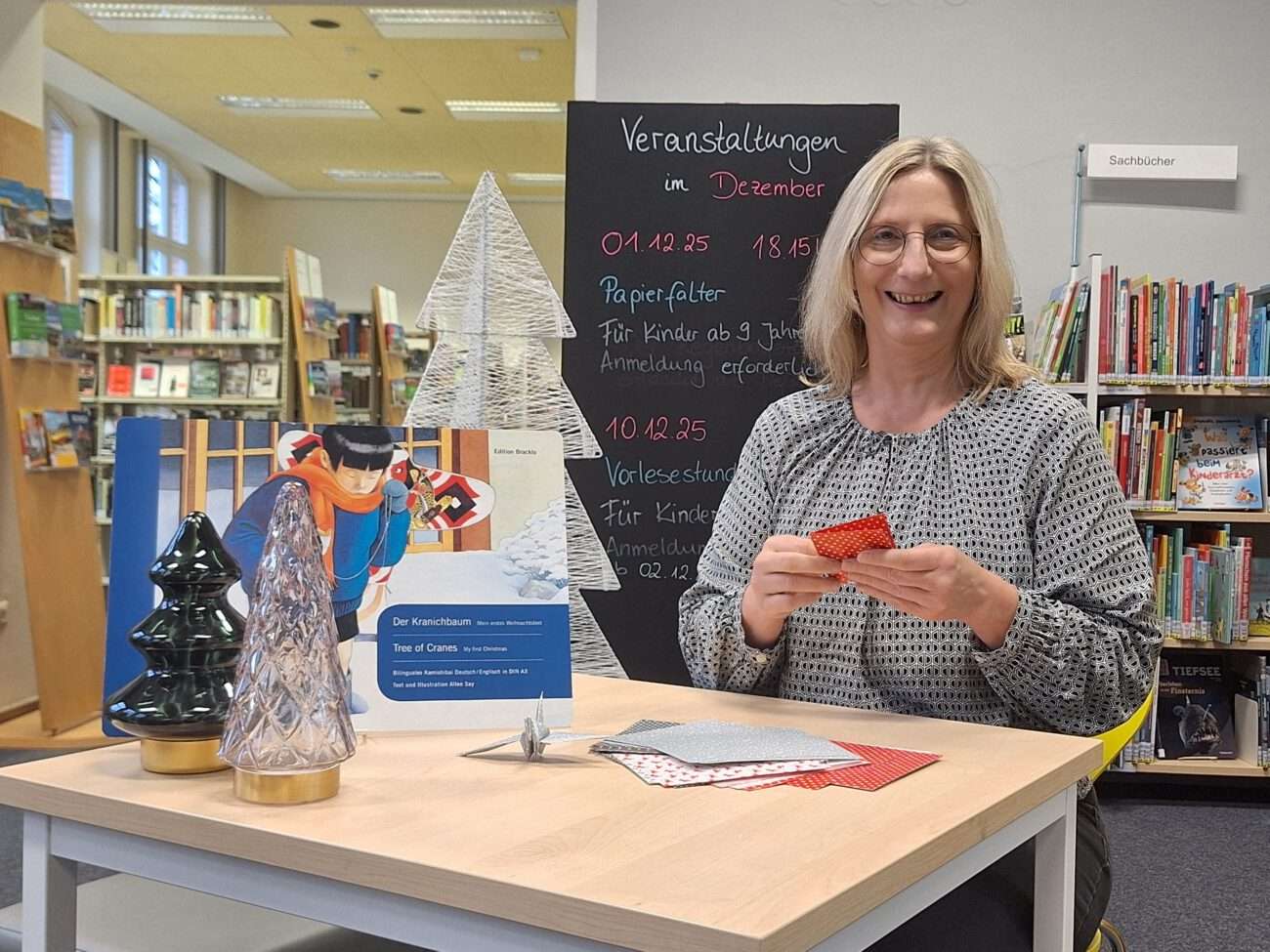 Außerhalb der Öffnungszeiten der Stadtbücherei Höxter findet einmal im Monat die Veranstaltungsreihe „Papierfalter“ statt. Eingeladen sind alle Kinder ab 9 Jahre. Beim nächsten Termin am Montag 01.12.2025 wird die Geschichte „Der Kranichbaum“ von Allen Say erzählt.