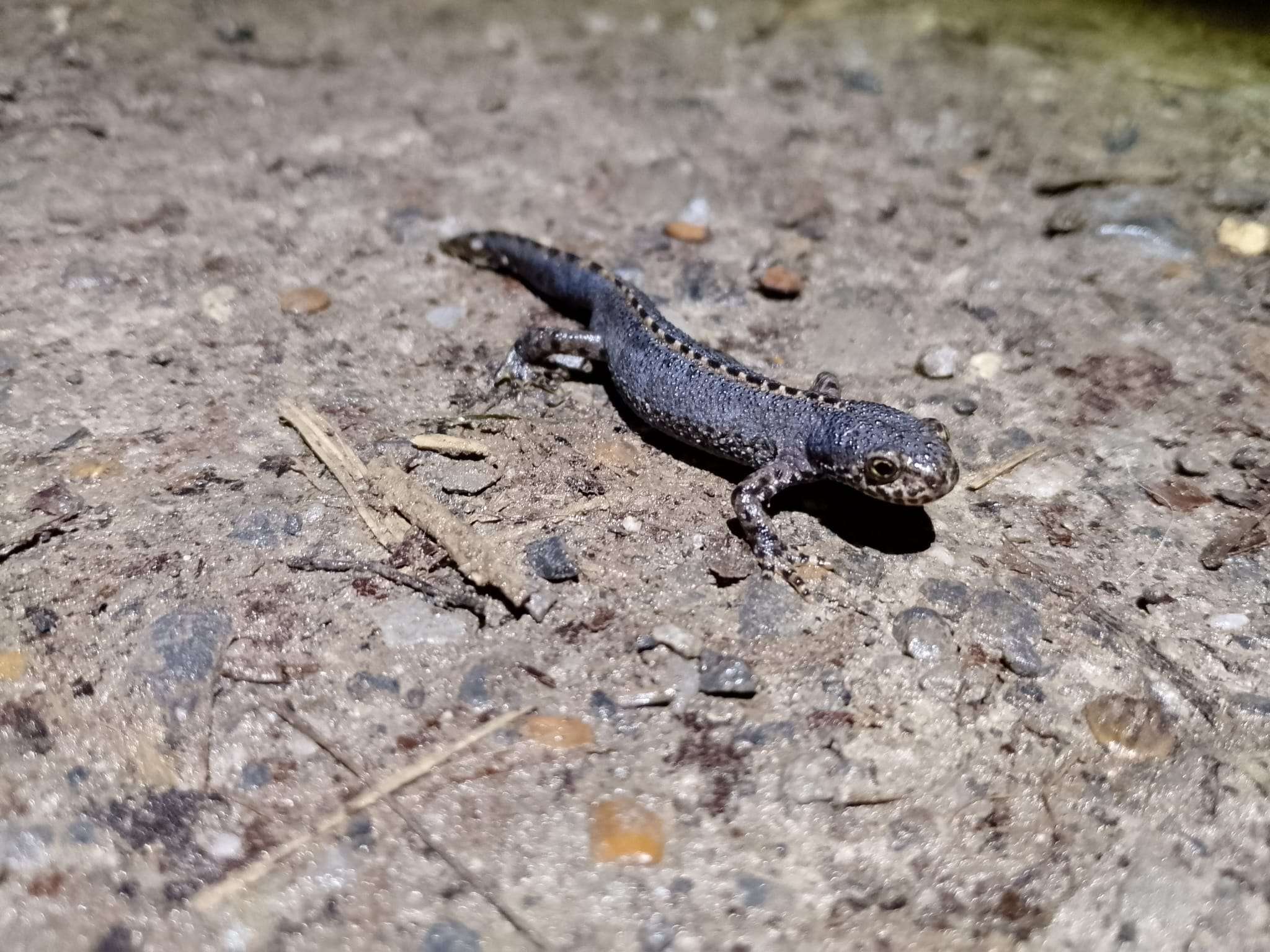 BU: Ein Bergmolch auf dem Weg zum Laichgewässer. Foto: Stadt Gütersloh