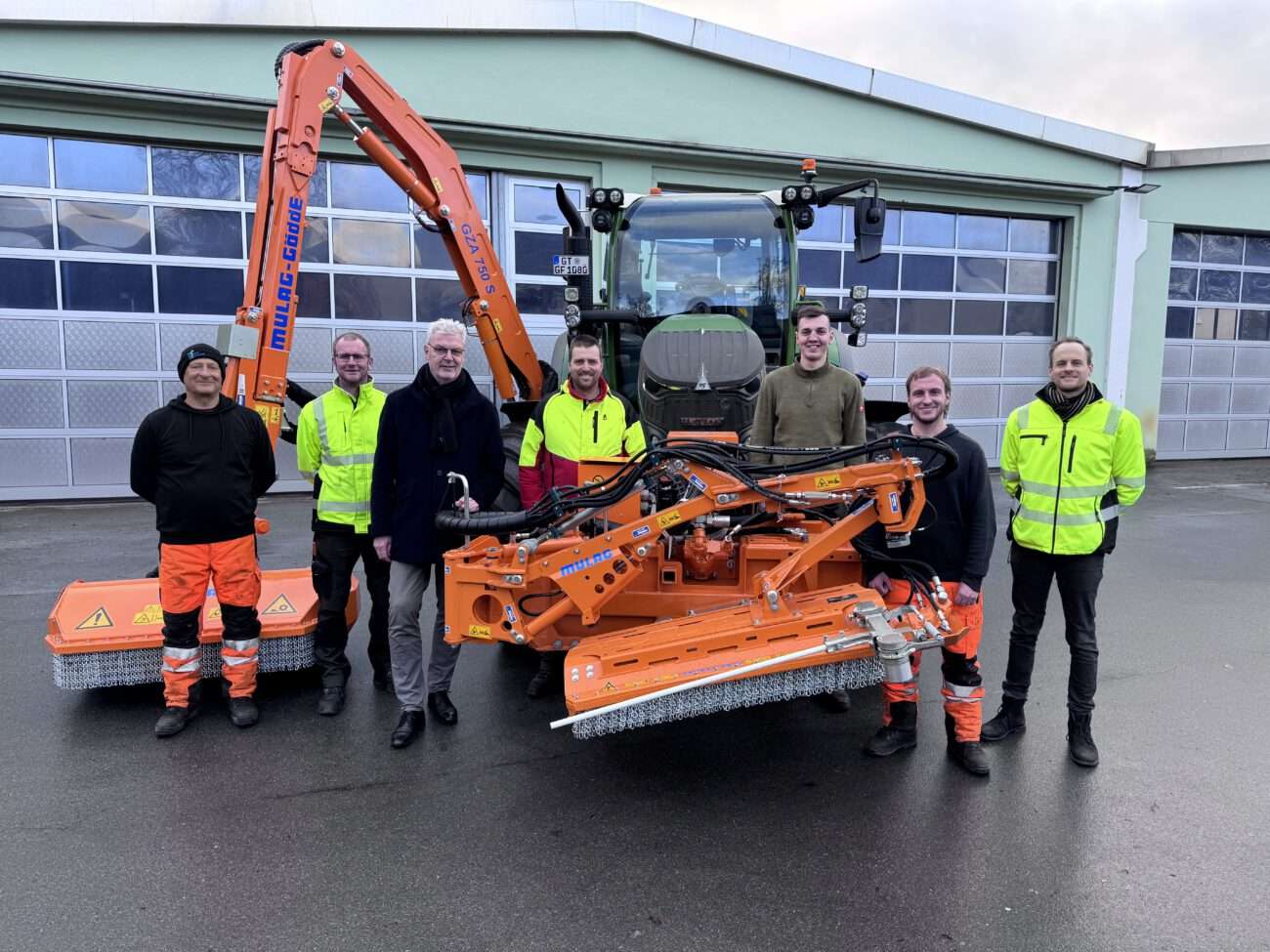 Die Ersatzbeschaffung für rund 400.000 Euro ist technisch ein deutlicher Fortschritt: Der neue Traktor ist nicht nur mit einem Mittel-, sondern auch mit einem Frontmähwerk ausgestattet, die parallel arbeiten und so größere Flächen in einem Arbeitsgang erfassen können. Ein integriertes Gebläse entfernt das anfallende Mähgut direkt von angrenzenden Verkehrsflächen – eine technische Neuerung im Vergleich zum vorherigen Traktor. Ergänzt wird die Ausstattung durch einen seitlichen Auslegerarm mit einer Reichweite von bis zu 7,5 Metern, der Mäharbeiten in und an Gräben übernimmt. Trotz der umfangreichen technischen Ausstattung kann das Fahrzeug von einer Person bedient werden.