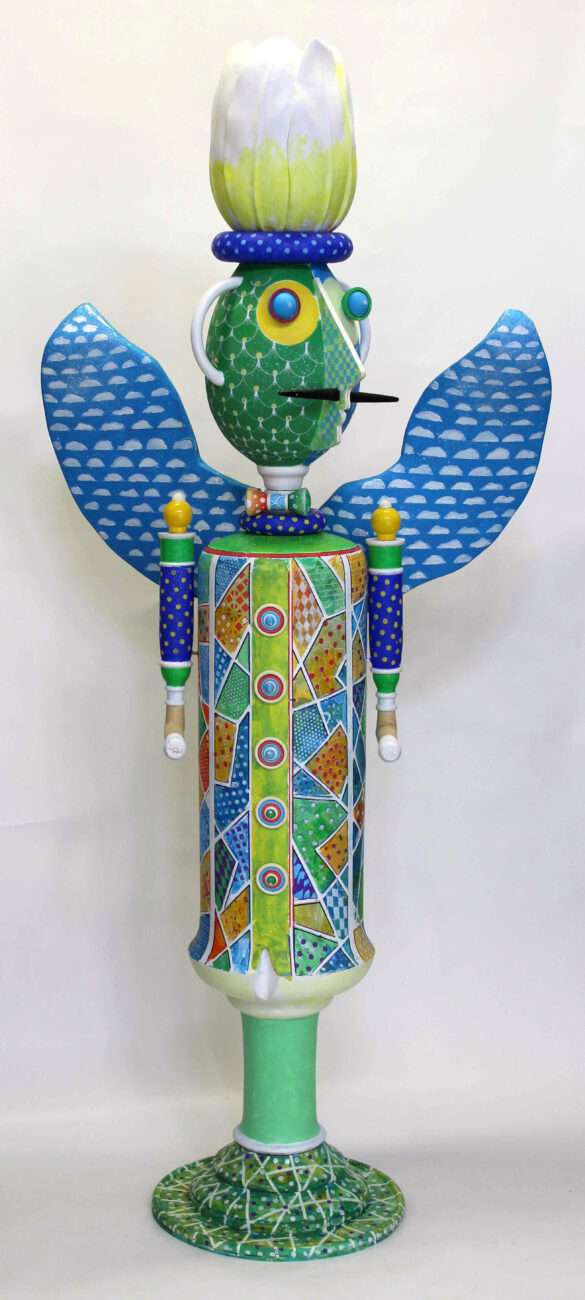 Bild: Phantasievolle, farbenfrohe und oft abstrakte Objekte und Bilder von Siegfried Lehmann wie die 185 cm hohe „SCULPTURE: 2023.10“ sind bis April im Rathaus zu sehen.