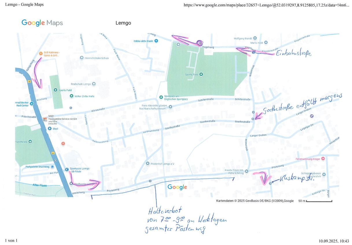 Noch bis Ende kommender Woche lässt der Kreis Lippe Kanalarbeiten auf der Voßheider Straße durchführen. Die Linie 921, die am Morgen an der Grundschule Brake und an der Südschule hält, muss deshalb in der kommenden Woche in Fahrtrichtung Lemgo eine Umleitung fahren. Die Haltestellen Breite, Wilhelmsburg und Brake Markt entfallen. Stattdessen fährt die Buslinie über Kluckhofer Weg und Wiembecker Straße und bedient die dortigen Haltestellen Kluckhof, Maßbruch, Buschkamp und Stucken.