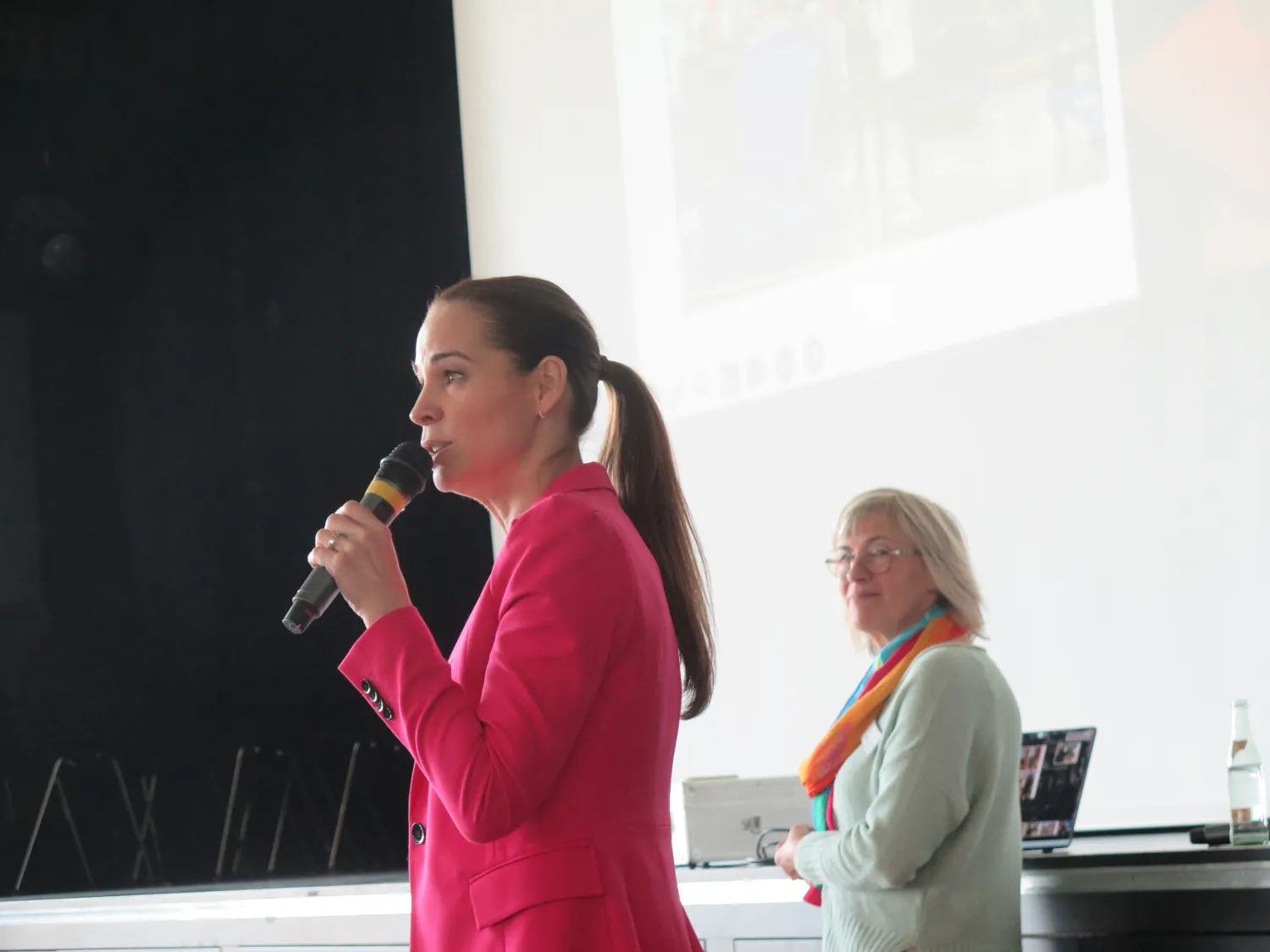 Nach einer Begrüßung durch Grita Behrens, die an die Notwendigkeit echter Gleichberechtigung erinnerte, stellte Marlies Witte die Arbeit des Westfälisch-Lippischen LandFrauenverbands e.V. vor. In diesem Zuge bat sie um Unterstützung für das landwirtschaftliche Sorgentelefon. Das Highlight des Nachmittags war der Auftritt der bekannten WDR-Moderatorin Kristina Sterz. Sie gewährte spannende Einblicke in ihren Berufsalltag, wobei besonders die Details zu Technik und Styling für regen Austausch und viele Fragen sorgten. Bei Kaffee und Kuchen fand die gelungene Veranstaltung mit insgesamt knapp 200 Gästen einen gemütlichen Abschluss. Grita Behrens sprach allen Helferinnen und Helfern ihren herzlichen Dank aus.