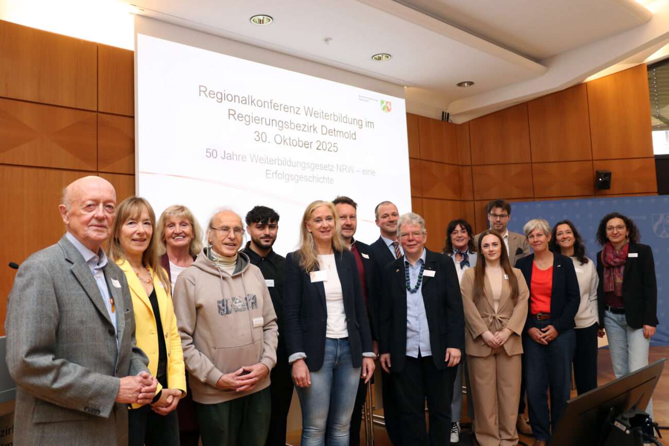 Detmold (24. November 2025). Rund 70 Teilnehmende aus der Weiterbildung, darunter Vertreterinnen und Vertreter der Volkshochschulen, freier Bildungseinrichtungen und weiterer Akteure der Branche, trafen sich zur 24. Regionalkonferenz Weiterbildung in Ostwestfalen-Lippe. Gastgeber war die Bezirksregierung Detmold.