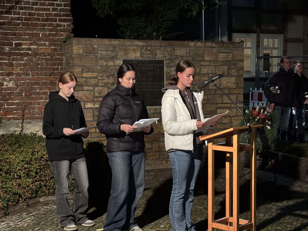 Salzkotten. Am Isaak-Auerbach-Platz, dem ehemaligen Standort der Synagoge in Salzkotten, fand am 14. November 2025 die diesjährige Gedenkstättenfeier des Vereins Judentum Salzkotten e.V. statt. Der Bürgermeister der Stadt Salzkotten, Ulrich Berger, Schülerinnen der Klasse 10a des Liebfrauengymnasiums in Büren sowie Elisabeth Kloke-Kemper vom Verein Judentum Salzkotten e.V. Stadt erinnerten an das Schicksal jüdischer Mitbürgerinnen und Mitbürger in Salzkotten sowie an die Reichspogromnacht von 1938. Der Isaak-Auerbach-Platz mahnt: Nie wieder darf Erinnerung bloßer Trauer weichen, sie soll Verantwortung wecken – heute und in Zukunft. Die Zerstörung der Synagoge in der Lüftestraße und das Leid der jüdischen Familie Auerbach stehen stellvertretend für Gewalt jener Zeit. Der Bürgermeister von Salzkotten appellierte eindringlich gegen das Vergessen: Antisemitismus sei kein Randproblem, sondern eine fortlaufende Bedrohung unserer Demokratie; Wachsamkeit, Zivilcourage und konkretes Engagement im Alltag seien nötig. Aus der Klasse 10a des LFG trugen Josie, Amelie und Mariella einen Beitrag vor, der gemeinsam mit ihrer Lehrerin Annika Diermann und Mitschülerinnen in der Auseinandersetzung mit dem Thema im GeWi-Unterricht entstand. Sie verbanden die Reichspogromnacht mit den gesellschaftlichen Strömungen der Gegenwart, riefen zu Mitgefühl, Zivilcourage und klarer Haltung gegen Antisemitismus auf und machten deutlich, dass Gedenken lebendig bleibt, wenn es ins Handeln mündet. Im Verlauf der Veranstaltung wurden die jüdischen Mitbürgerinnen und Mitbürger Salzkottens genannt, die in Konzentrationslagern ermordet wurden. Die Feier wurde musikalisch vom Musikverein Upsprunge gestaltet, deren Stücke der Gedenkfeier einen würdigen Rahmen boten. Erinnerung soll Handeln gegen Antisemitismus und Diskriminierung fördern; Bildung, Aufklärung und sichtbares jüdisches Leben in der Region bleiben zentrale Anliegen des Vereins Judentum Salzkotten e.V. und des Liebfrauengymnasiums, das seit mehr als 20 Jahren das Siegel „Schule ohne Rassismus“ trägt und im schulischen Alltag lebt.