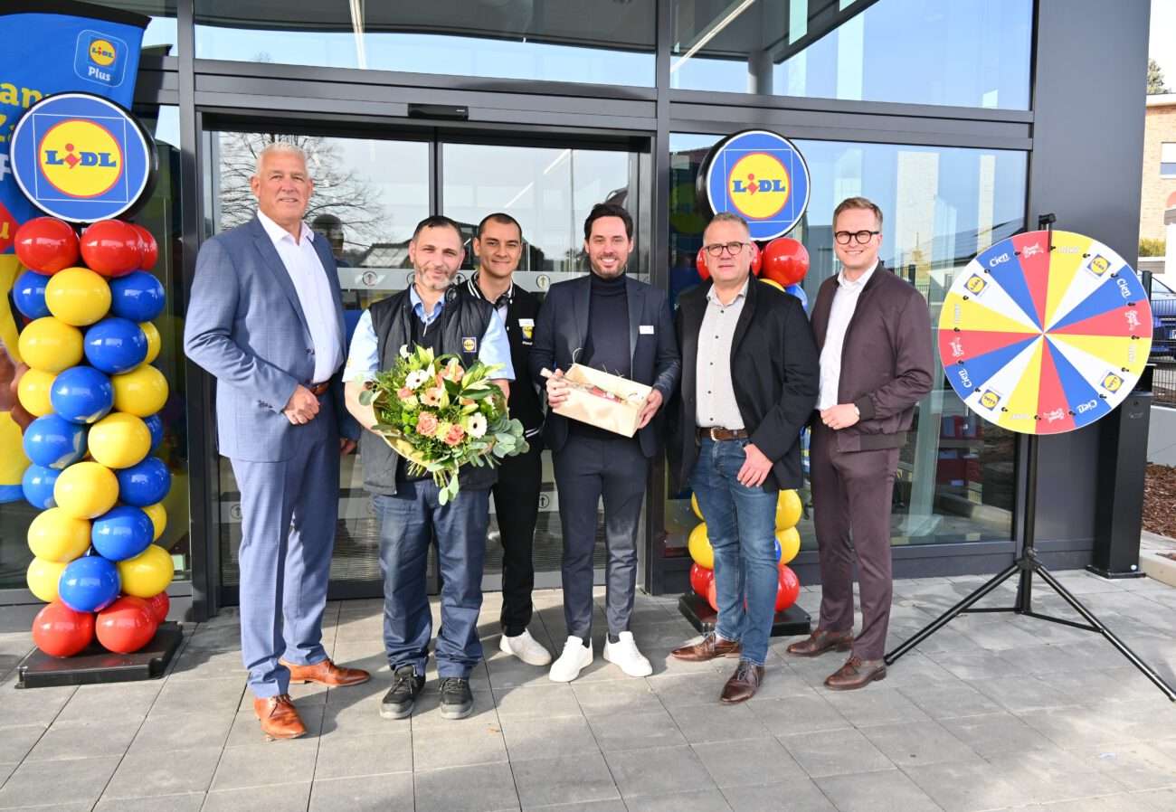 Nach rund einem halben Jahr Bauzeit wurde an der Bahnhofstraße 41 in Büren die neue Lidl-Filiale feierlich eröffnet. Wigbert Löper, stellvertretender Bürgermeister und Ortsvorsteher, Jürgen Möller, Vorsitzender des Bauausschusses, und Michael Kubat von der Wirtschaftsförderung der Stadt Büren waren vor Ort, um sich die neue Filiale anzuschauen.