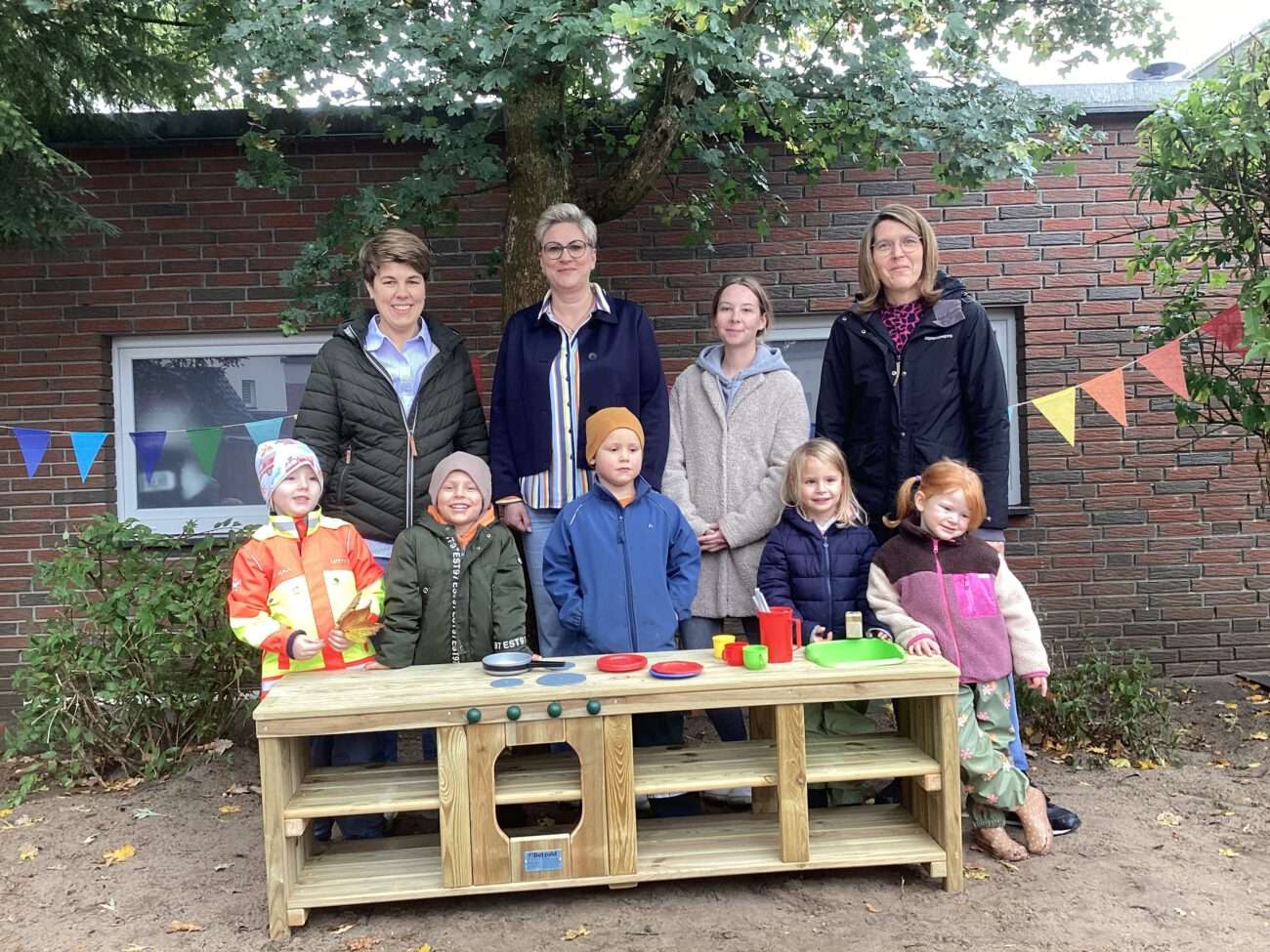 Bildzeile: (v. l.): Liam-Ray Jahnke, Annette Breische (Gemeindereferentin), Flora Klingenthal, Hildegard Beine (Eine Welt Kreis), Nora Franke, Barbara Hattrup, Helena Clausmeyer, Ulrike Altroge und Johannes Pagel
