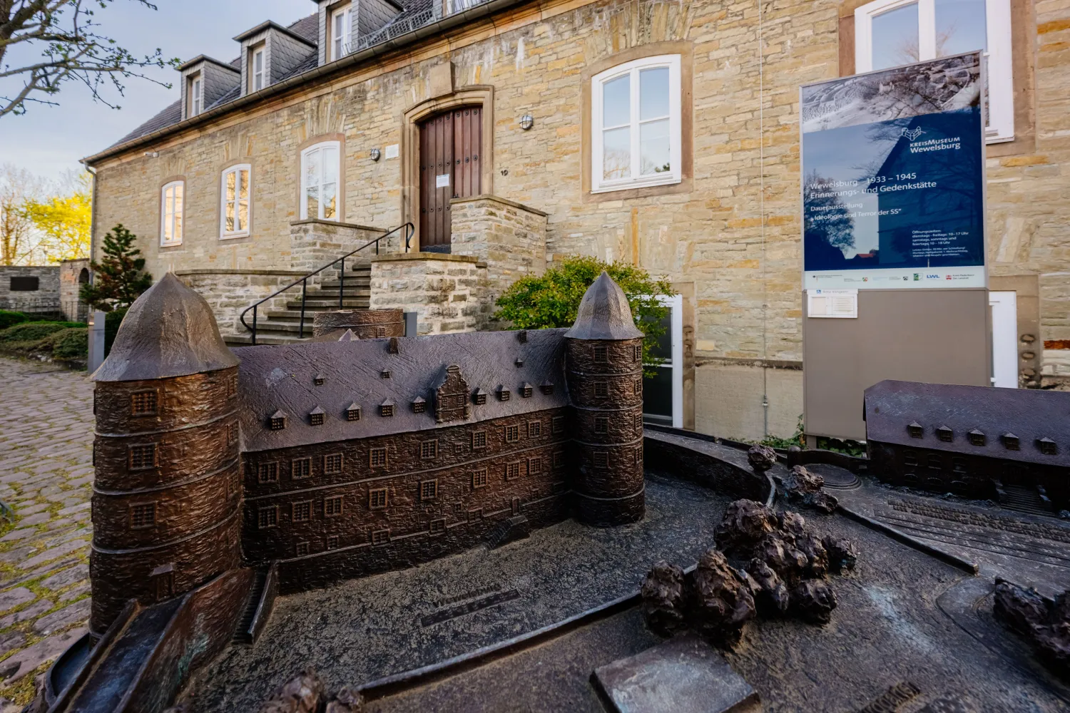 Der Rundgang führt durch die historischen Räume des ehemaligen Wachgebäudes, in denen die Ausstellung auf rund 850 Quadratmetern einen ausführlichen Einblick in die ideologischen Grundlagen der Schutzstaffel (SS) der NSDAP und deren verbrecherische Konsequenzen gibt. Gezeigt werden sowohl die lokalen Ereignisse in Wewelsburg als auch die europäischen Dimensionen der SS-Aktivitäten.