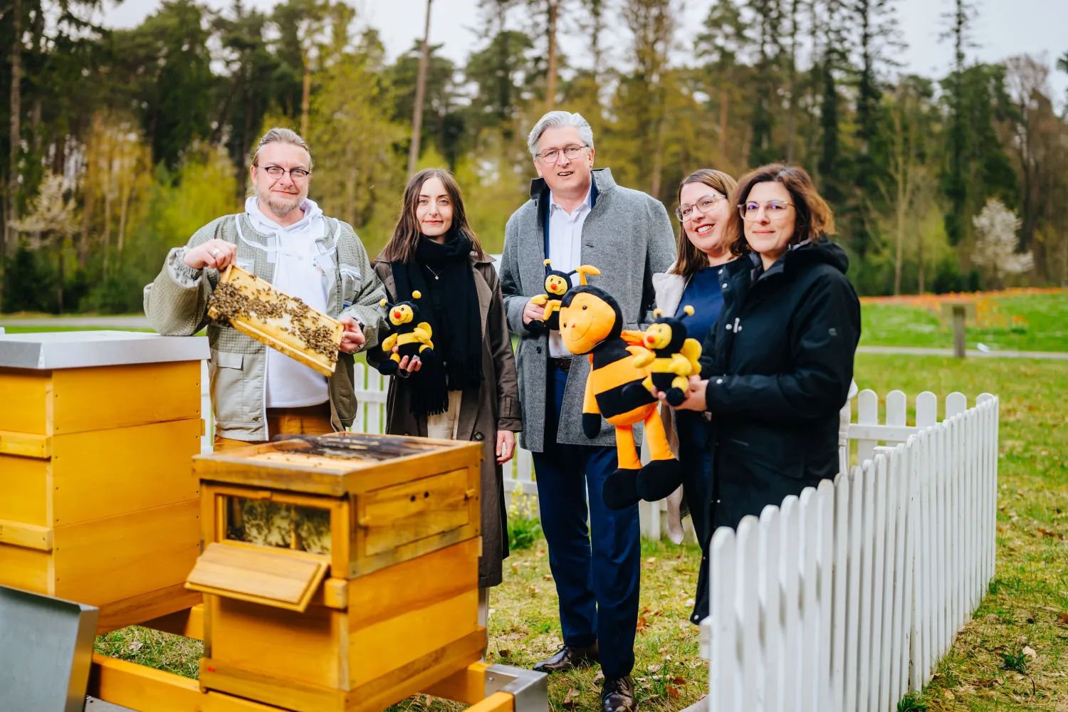 Die VerbundVolksbank OWL eG hat vier Bienenstöcke in der Parkanlage aufgestellt