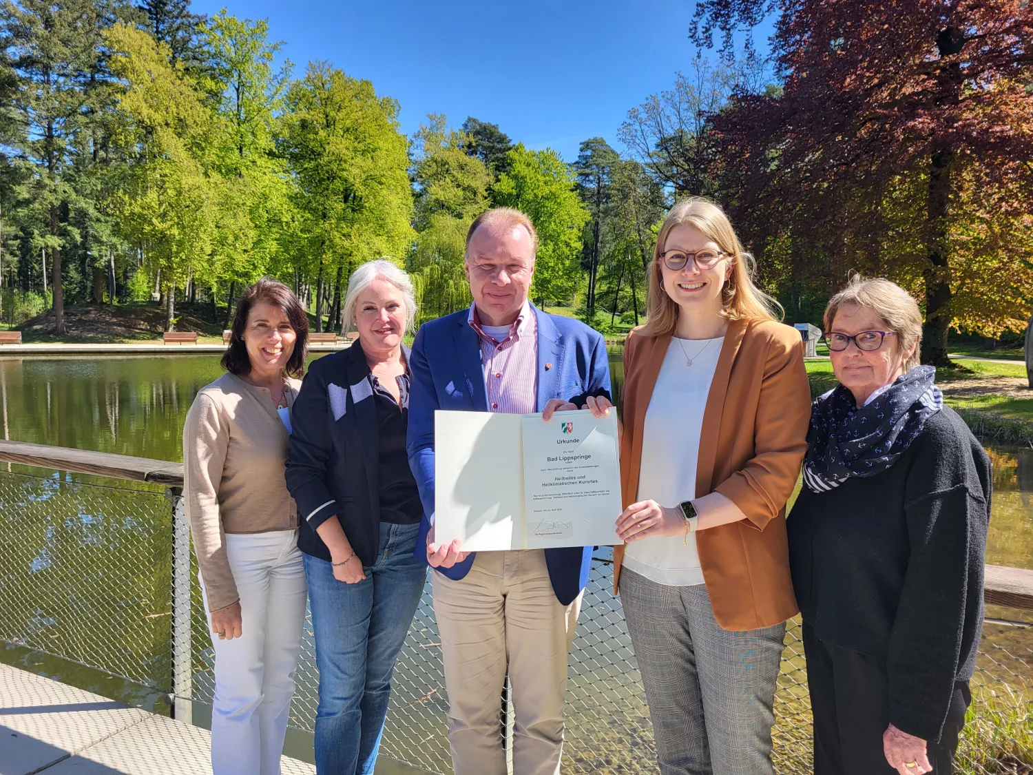 Die Stadt Bad Lippspringe hat die turnusmäßige Überprüfung der Bezirksregierung Detmold mit Bravour bestanden und darf die begehrten Prädikate „Heilbad und Heilklimatischer Kurort“ für weitere zehn Jahre führen. „Wir sind sehr stolz darauf und freuen uns außerordentlich über diese erneute Auszeichnung, denn beide Prädikate sind sowohl im medizinischen als auch im touristischen Bereich von hoher Bedeutung“, betont Bürgermeister Ulrich Lange. Stadtmarketing-Chefin Asli Noyan ergänzt: „Patienten und Touristen, die Erholung suchen, sind dank zahlreicher gesundheitsfördernder Faktoren in Bad Lippspringe bestens aufgehoben.“