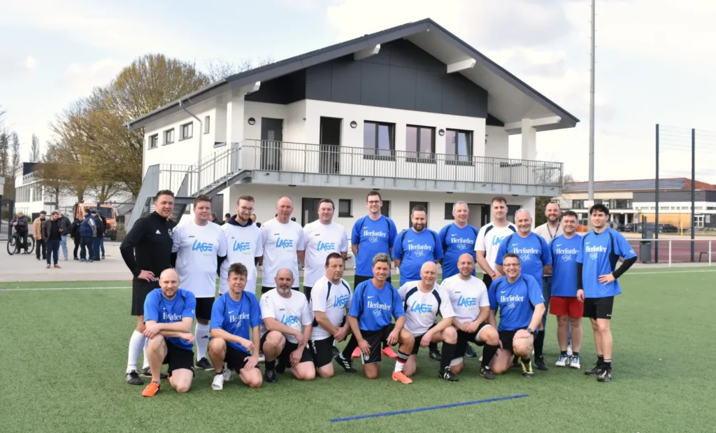 Am Freitagnachmittag, 20.03.2026, war es soweit: Nach nahezu 4 Jahren Bauzeit übergab Bürgermeister Matthias Kalkreuter das neue Multifunktionsgebäude am Kunstrasenplatz Werreanger feierlich seiner Bestimmung. Mit Vertretern des Rates, der am Werreanger spielenden Fußballvereine sowie Mitgliedern des Fußball- und Leichtathletik-Verbandes Westfalen wurde der Abschluss der Bauarbeiten gefeiert.