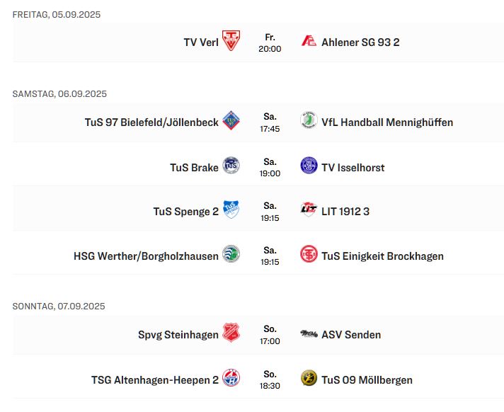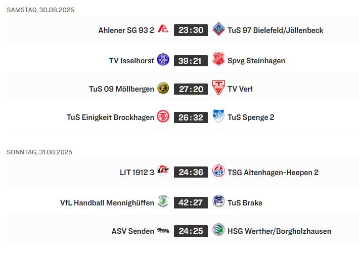 VfL Handball Mennighüffen VfL Handball Mennighüffen | 1 | 1-0-0 1 | 0 | 0 | 42:27 | 15 | 2 | ||