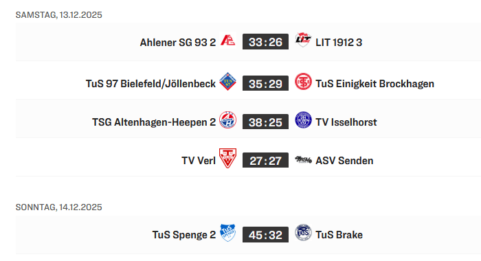 TuS Einigkeit Brockhagen TuS Einigkeit Brockhagen | 11 | 4-2-5 4 | 2 | 5 | 309:325 | -16 | 10 | |