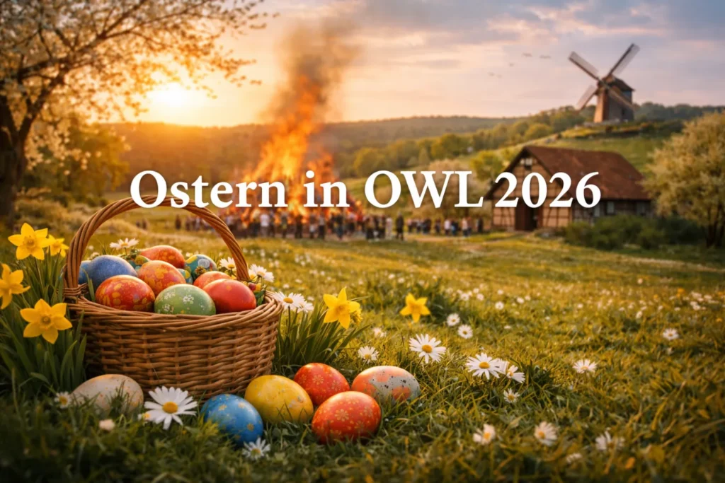 Ob traditionelle Osterfeuer, lebendige Ostermärkte oder spannende Mitmachaktionen für Kinder – in ganz OWL erwartet dich ein abwechslungsreiches Programm. Städte wie Bielefeld, Paderborn oder Gütersloh sowie viele kleinere Orte bieten rund um die Feiertage besondere Erlebnisse für Groß und Klein.