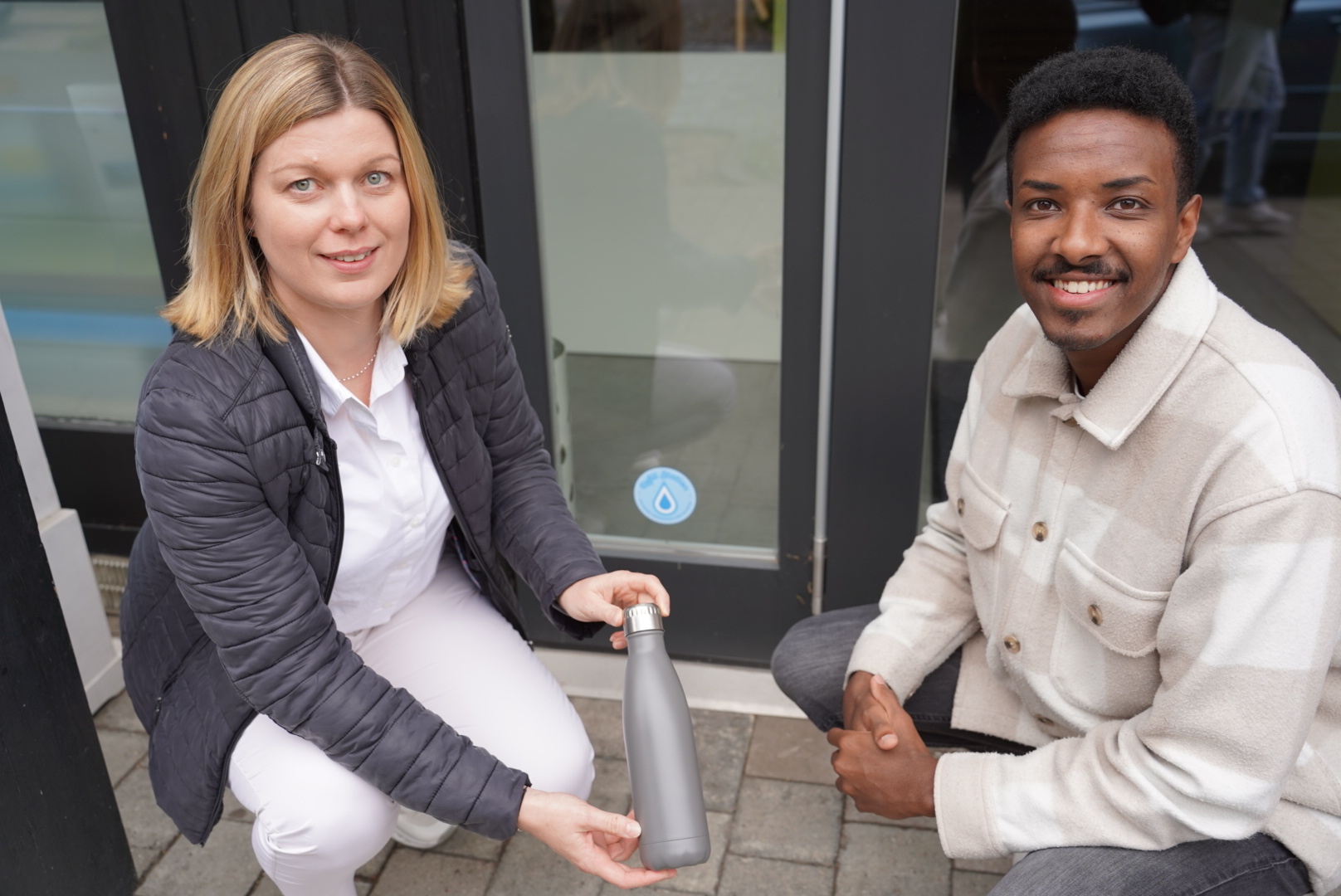 Esther Rosenbrock und Dennis Omar aus dem Team des Familien-Info-Treffs in der Schülerstraße freuen sich auf durstige Besucher +++ Foto: Stadt Detmold
