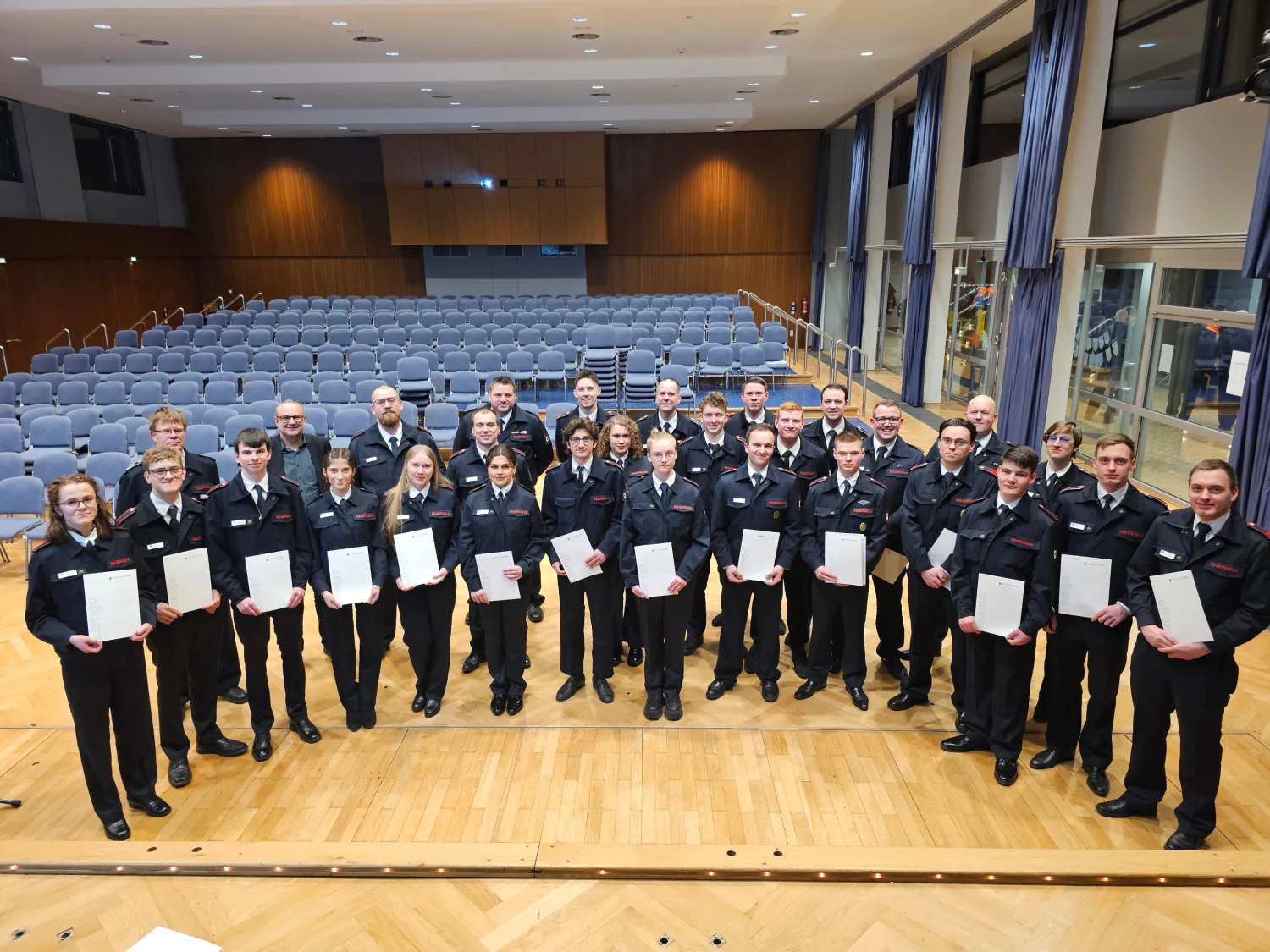 Bereits im Januar waren 25 Kameradinnen und Kameraden für ihre langjährige Treue und außergewöhnlichen Leistungen geehrt worden. Bei der Generalversammlung konnten nun 31 Einsatzkräfte als allen Einheiten der Lemgoer Feuerwehr befördert werden.