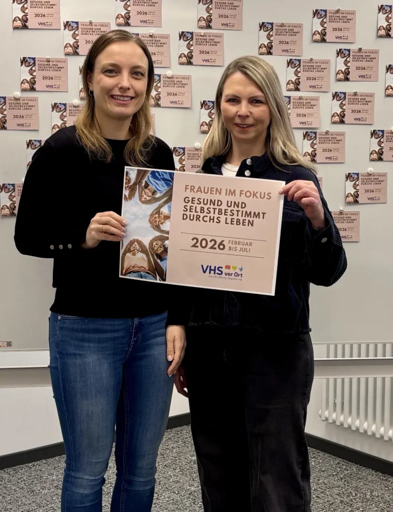 Freuen sich auf zahlreiche Anmeldungen für die Veranstaltungen der neuen Workshop-Reihe „Starke Frauen, starke Gesundheit“: (v. l.) Insa Burmann (pädagogische Mitarbeiterin der VHS vor Ort) und Sarah Wydrinna (Gleichstellungsbeauftragte Stadt Delbrück)