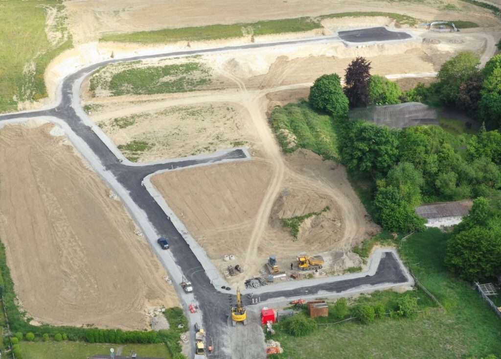 Eine Luftbildaufnahme des Baugebiets am Kapellenberg während der Erschließungsarbeiten 2025 +++ Foto: Stadt Büren