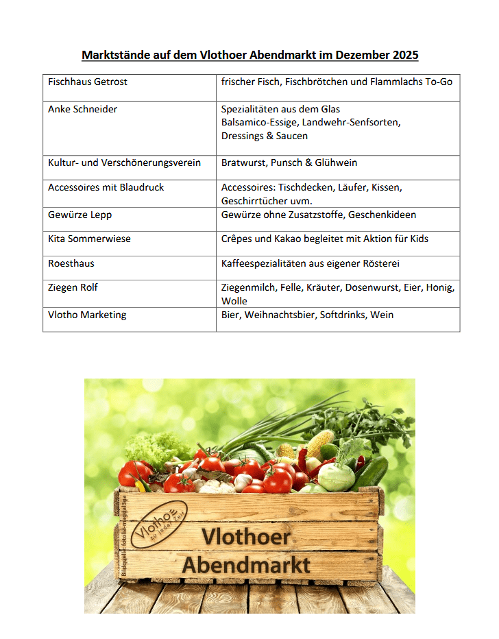 Alle teilnehmenden Stände finden Sie wie gewohnt auf www.vlotho.de.