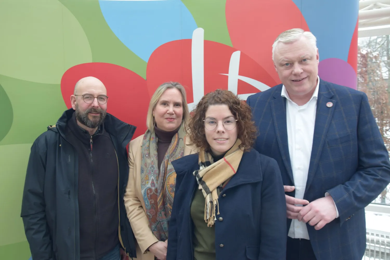 v.l. Abteilungsleiter Thomas Schwingel, Baudezernentin Julia Gogrewe, Klimaschutzbeauftragte Katharina Koßmann und Bürgermeister Daniel Hartmann kündigen die Bürgerveranstaltung „Welche Wärme für mein Haus?“ am 25. Februar 2026 im König-Wilhelm-Gymnasium an und freuen sich auf einen informativen Abend +++ Bildquelle: Stadt Höxter